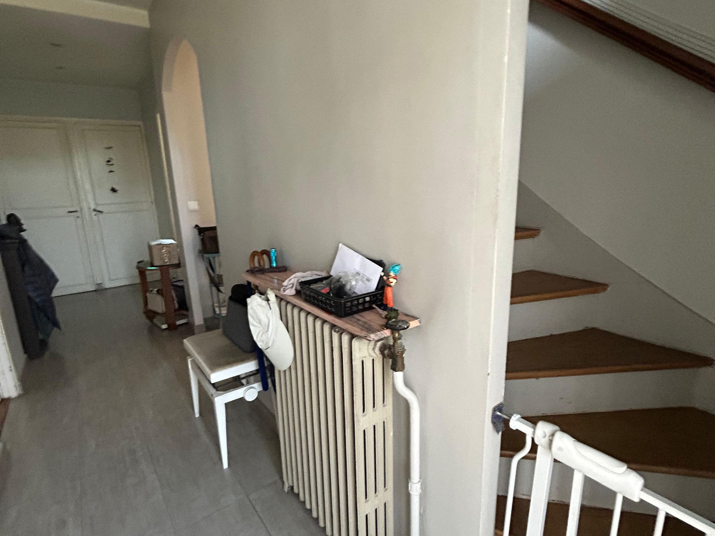 Une entrée moderne et accueillante a été repensée avec des rangements sur mesure intégrés sous l’escalier, sublimée par de belles moulures et un grand miroir.